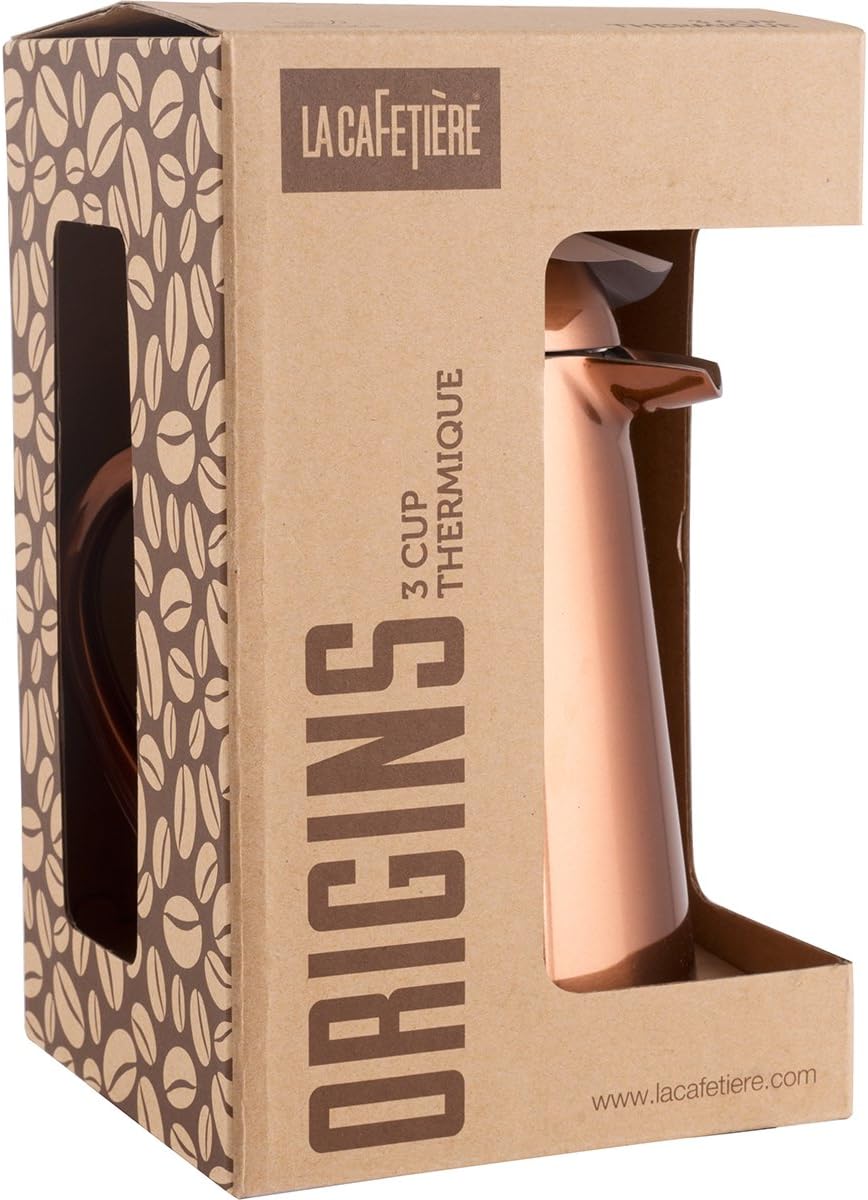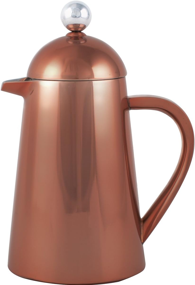 This elegant thermique copper cafetiere from Creative tops is both stylish and bold with its warm reflective copper finish that will make a stunning addition to any cafe or copper themed home. The copper coated stainless steel body is double walled keeping the outside of the cafetiere cool while the coffee inside remains hot for up to 3 times longer than conventional cafetieres.