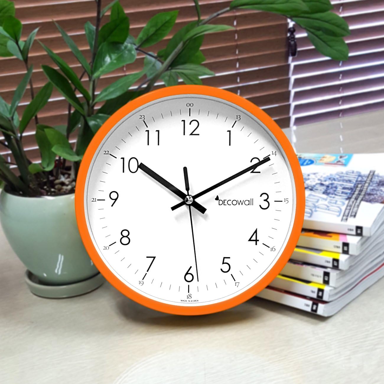 This simplistic yet stunning Decomates Orange kitchen wall clock.