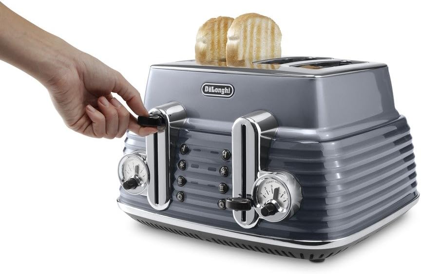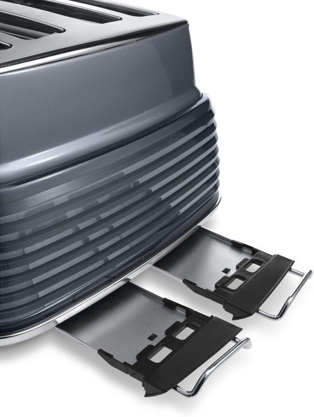 The Delonghi Scultura Grey 4 slot toaster is a stunning piece of design and engineering that would complete any up to date kitchen. It has many features such as 2 removable crumb trays & comes in a a high gloss finish.