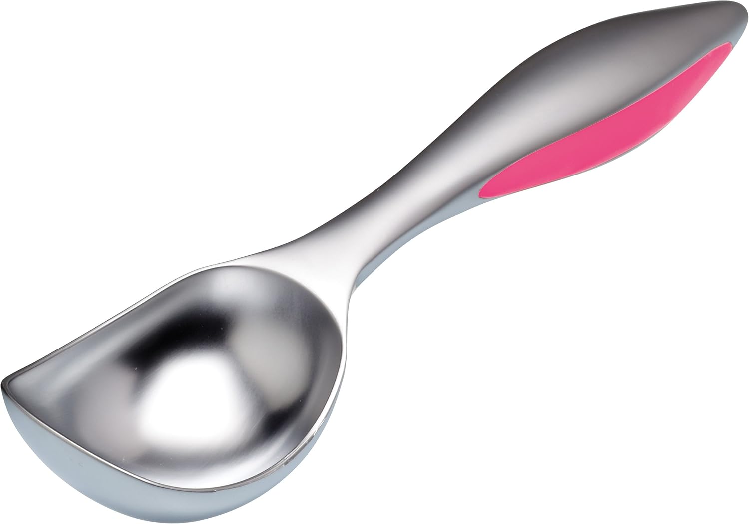 A Ice cream scoop from the KitchenCraft Colourworks range with hot pink soft touch handle.