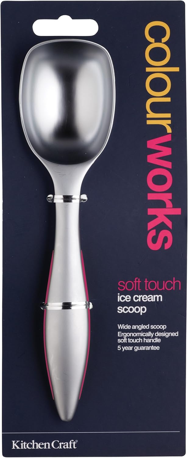 This ice cream scoop has a comfortable non-slip wide angled handle and the bright pink inset soft touch panel is sure to liven up any kitchen.