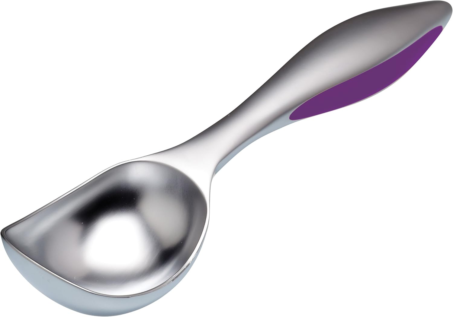 A Ice cream scoop from the KitchenCraft Colourworks range with purple soft touch handle.