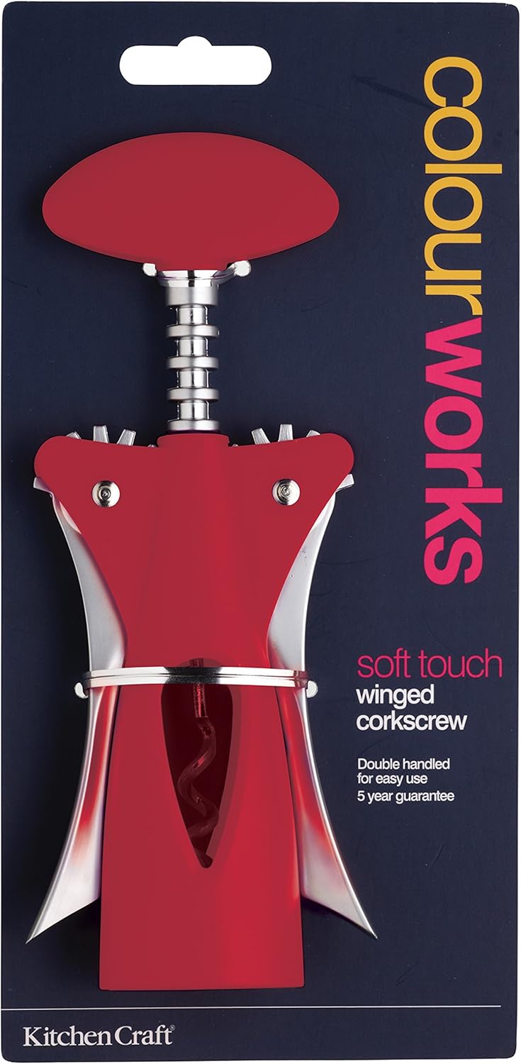 This winged corkscrew has a soft touch red body and head, that is sure to brighten up any kitchen. Making bottle opening easy, the featured double handles ensure comfortable use at all times. The corkscrew can be co-ordinated with a number of other items in the Colourworks range, allowing you to mix, match and co-ordinate your kitchen in a striking array of colours. Also comes with a five year guarantee.