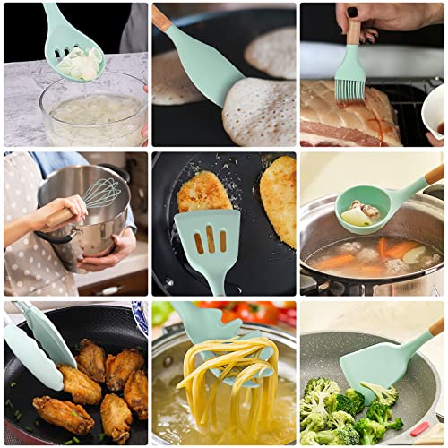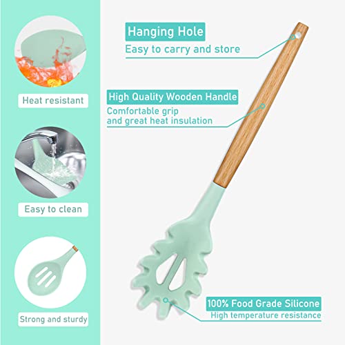 The ergonomic wooden handles of these kitchen utensils provide a comfortable and secure grip, while the bright mint green colour adds a unique and stylish flair to any kitchen.