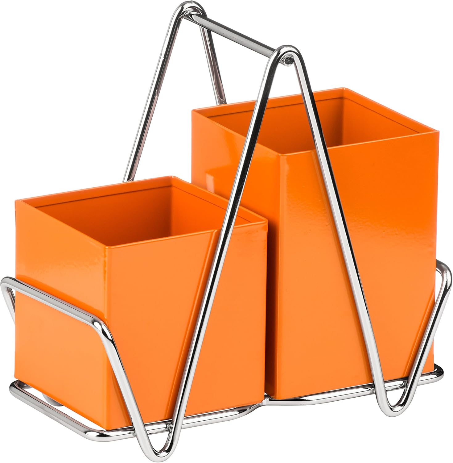 Help keep your kitchen tidy with this Cutlery Caddy with handle from Premier Housewares. This contemporary caddy is made from metal with a brightly coloured orange finish. It features drainage holes in the base to allow for the removal of excess water. The two different size compartments make it suitable for a variety of cutlery types or utensils.