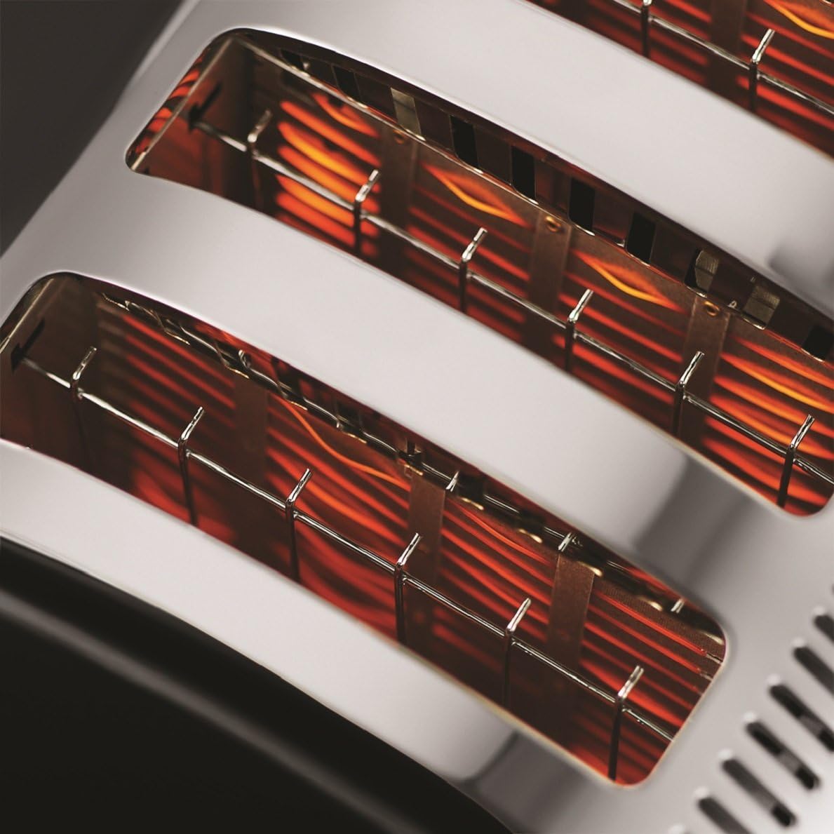 The extra wide slots on the Legacy 4 slice toaster allow the user to not only toast bread but also crumpets and tea cakes faster than most of the toasters on the market today. As always from a Russell Hobbs product quality and guaranteed and this toaster comes packed with features.