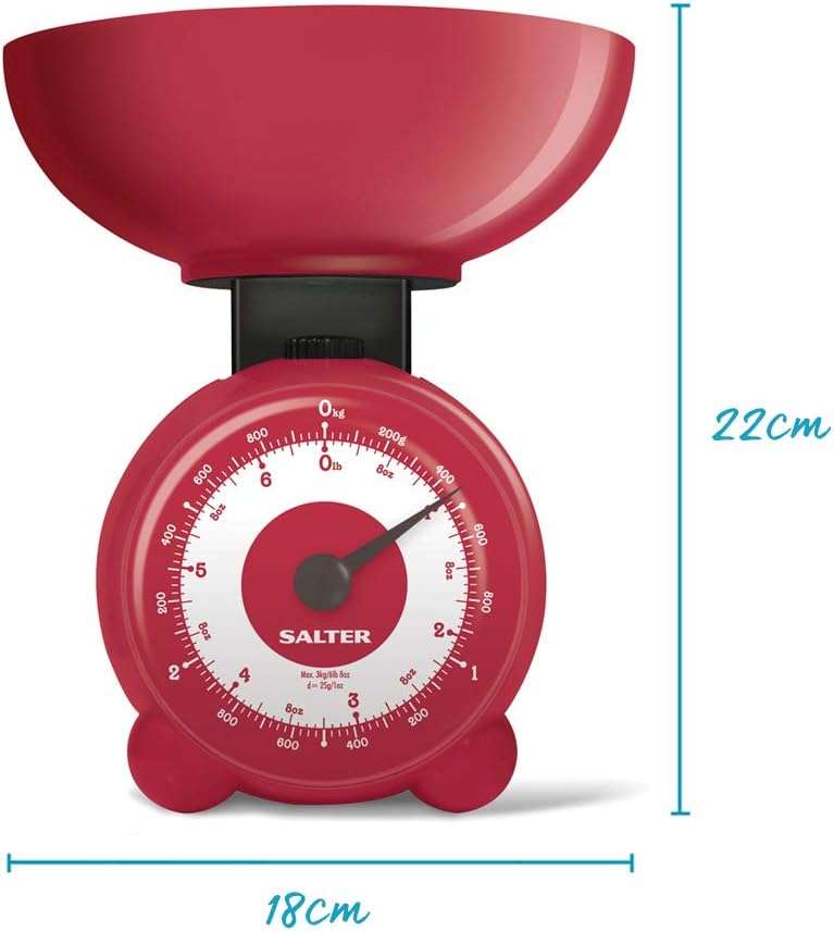 Compact kitchen scales to make your kitchen work space tidier & easier to use. The modern look of the Salter Orb Mechanical Scales will complement any kitchen. Easily stored in a cupboard, or on your counter top, it is easy to Read thanks to it’s calibrated measurement dial. It can hold a Capacity of 3Kg / 6lb 8oz and the scale progresses in increments of 25g / 1oz. The washable Bowl is dishwasher friendly & the adjustment Dial can calibrate the scales to accomodate the bowl, whilst still reading 0. Comes with a 15 year Guarantee.