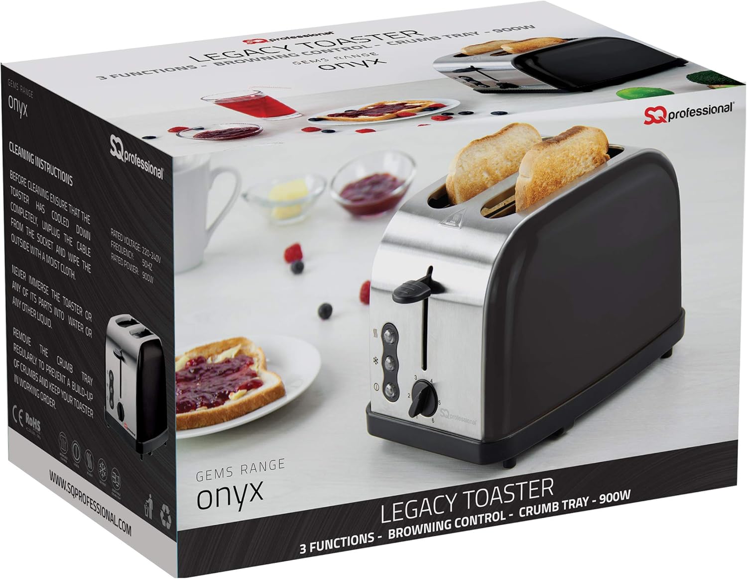 The 2 slice toaster from SQ Professional is a great buy for anyone needing a good looking toaster on a budget, the 900 Watt SQ Professional toaster is available in a range of colours so it can fit seamlessly into any colour coordinated kitchen area.