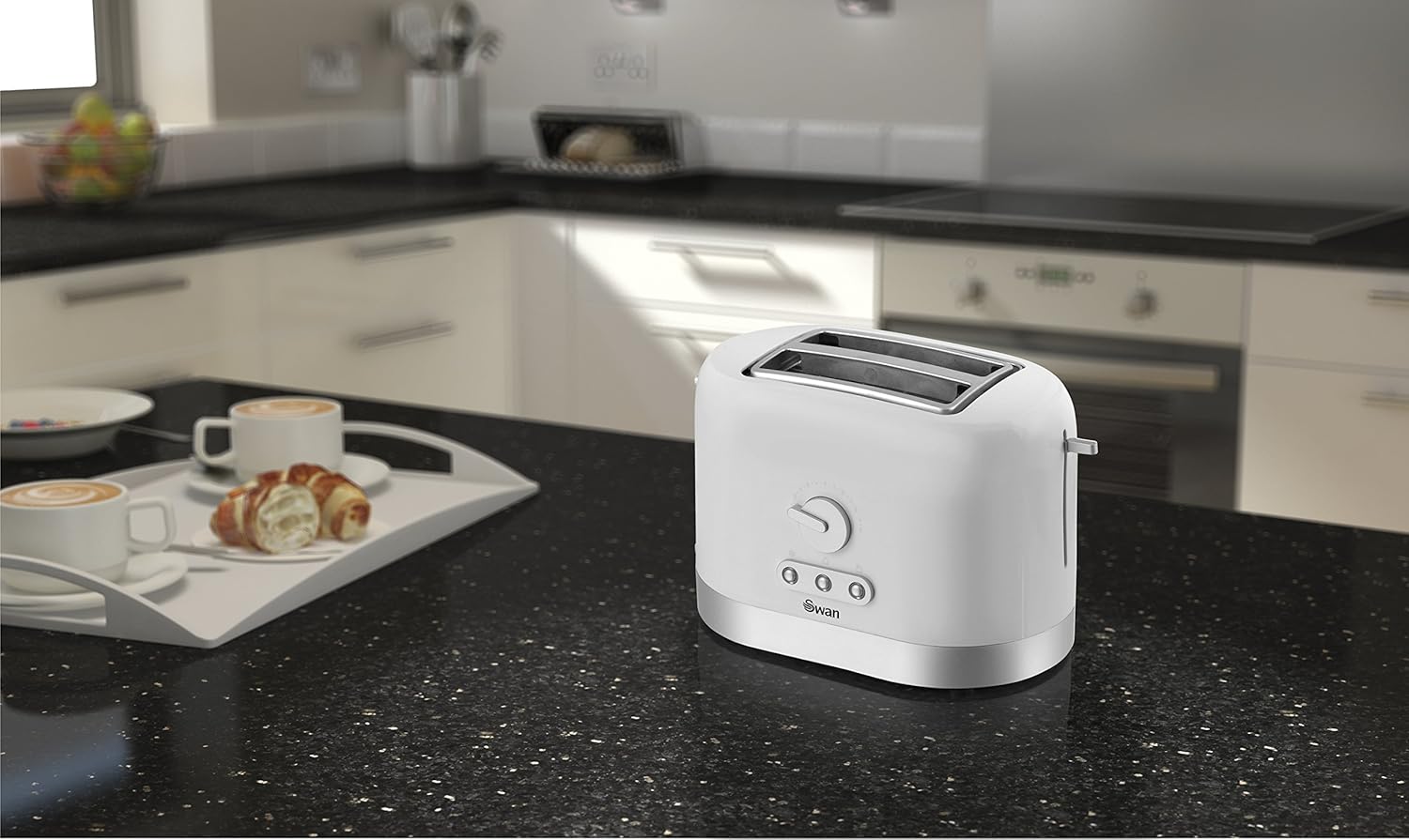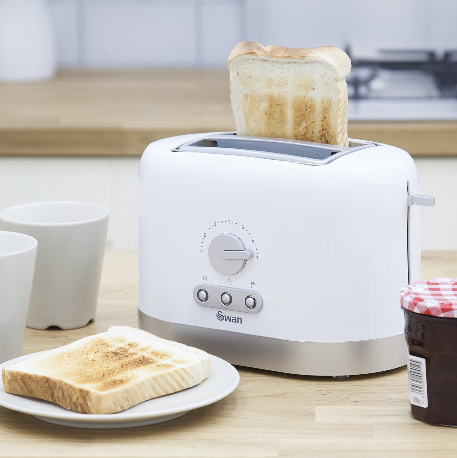 A small and simple 2 slice toaster ideal for a bedsit or student house. This cheap white toaster from Swan is a perfect and quick solution for toasting where space is not in abundance. The 2 slice toaster features variable browning control allowing you to toast your bread just the way you like it and the defrost function allows you to toast bread straight from the freezer. The toaster also features a reheat function in case your toast becomes cold and a cancel button to stop the toasting cycle.