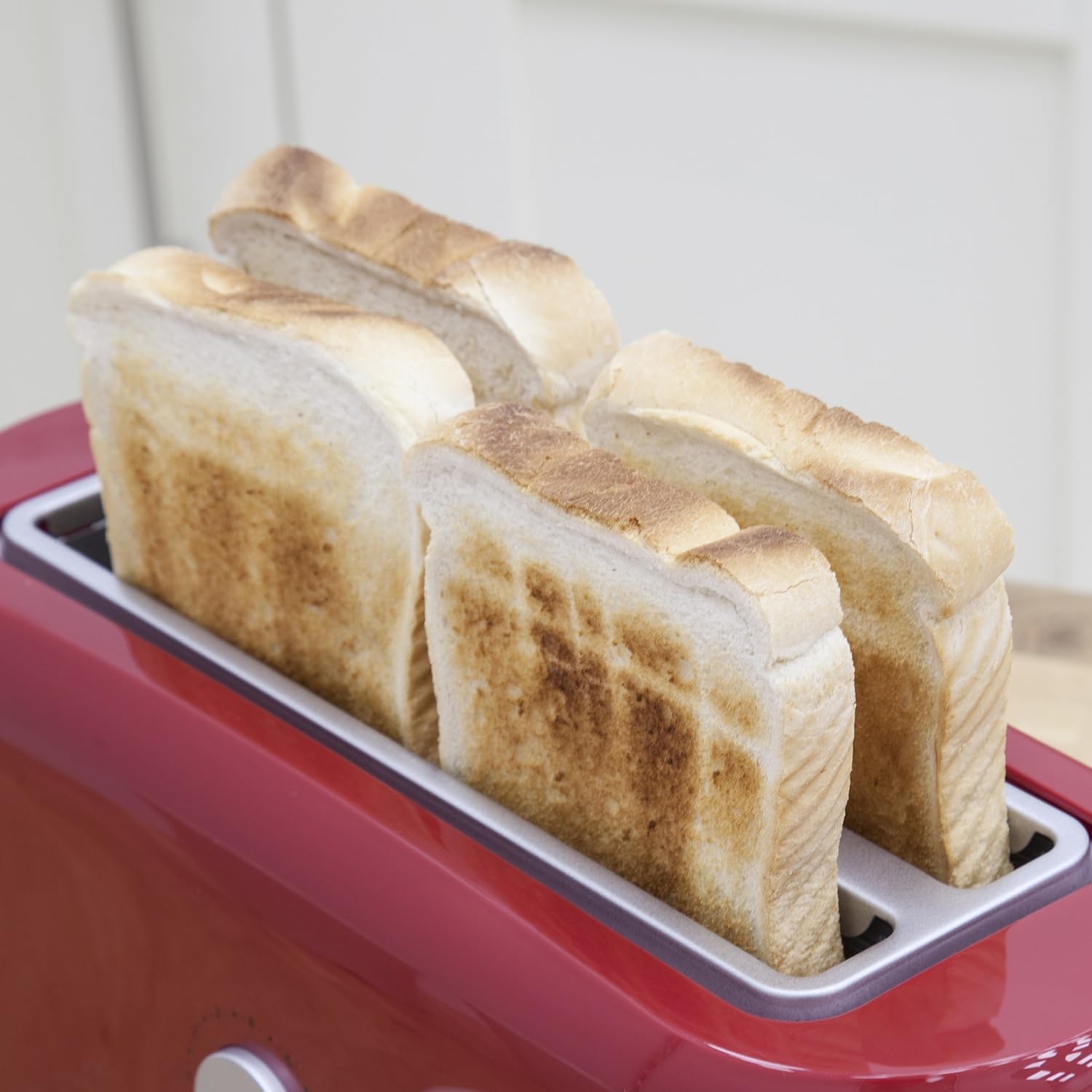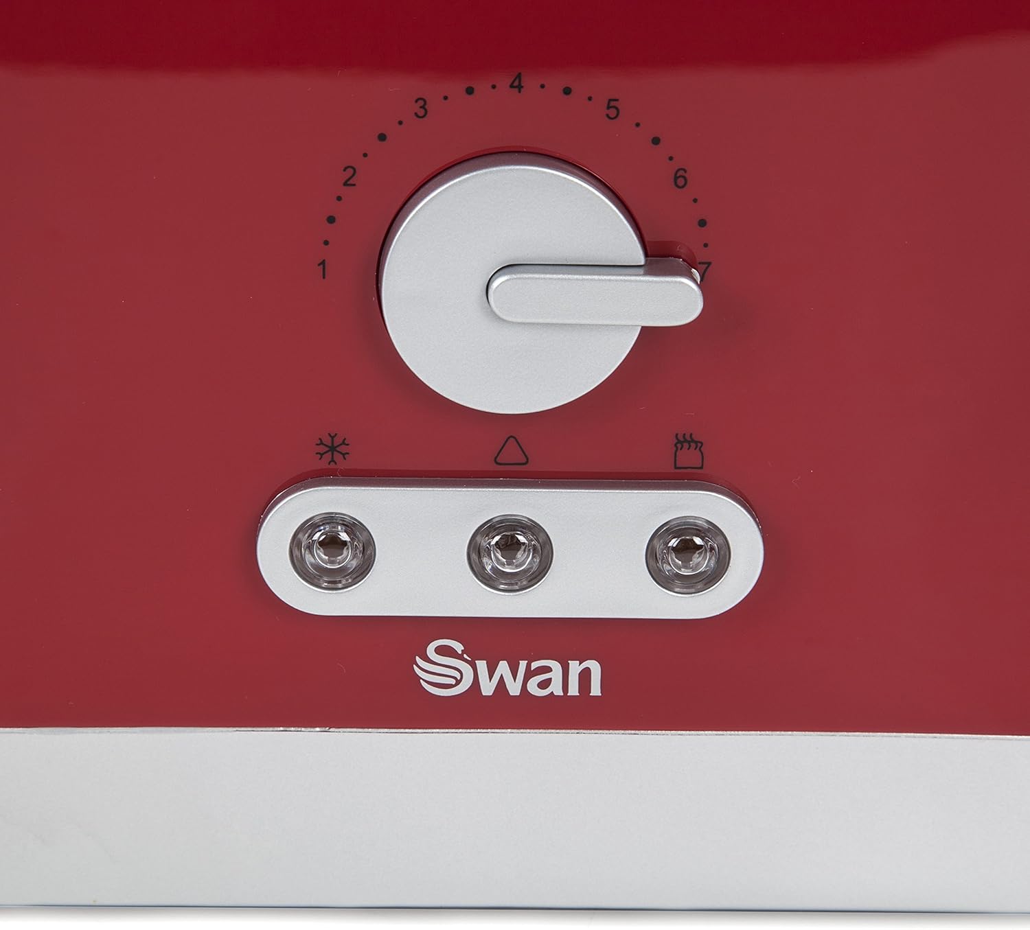 Swan 4 Slice Long Slot Red Toaster comes with self-centering guides & is a great addition to any kitchen surface. The variable browning control allows you to make your toast to perfection.