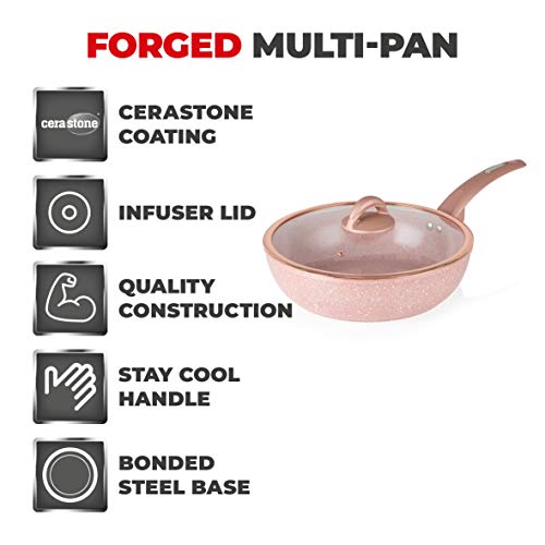 The Tower pink pan made of non stick Cerastone allowing you to use less oil for healthier cooking and easier cleaning.