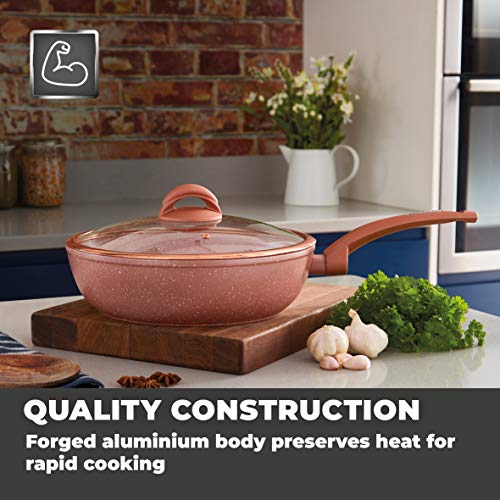 The Tower rose pink frying pan features a soft touch phenolic handle to provide a safe and comfortable grip while cooking.